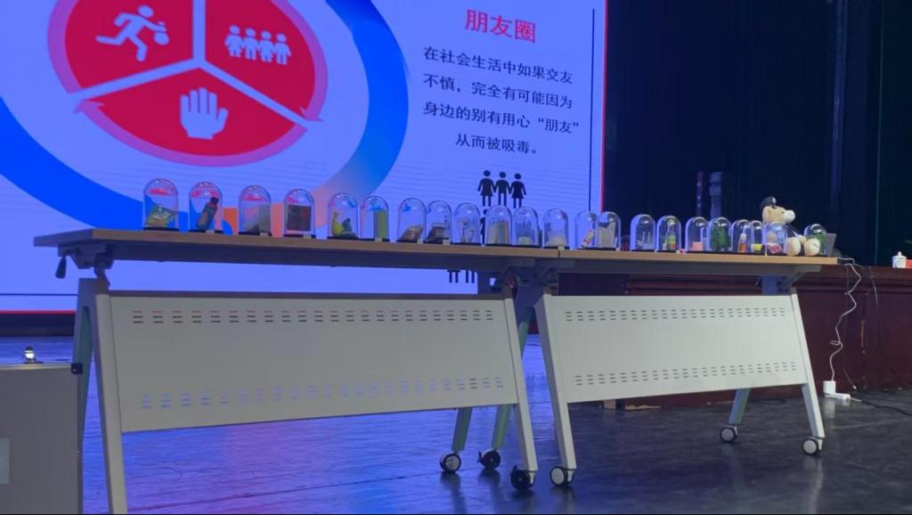 讲座伊始,李警官以“认识毒品”为切入点,以图文并茂的形式详细介绍了传统毒品与合成毒品的种类,并重点揭示了当下常见毒品的各种伪装形态及其巨大危害。现场展示的仿真毒品模型,让同学们直观地认识到毒品可能伪装成“糖果”“奶茶”等日常形态。