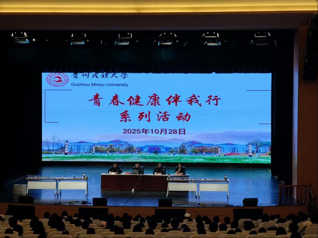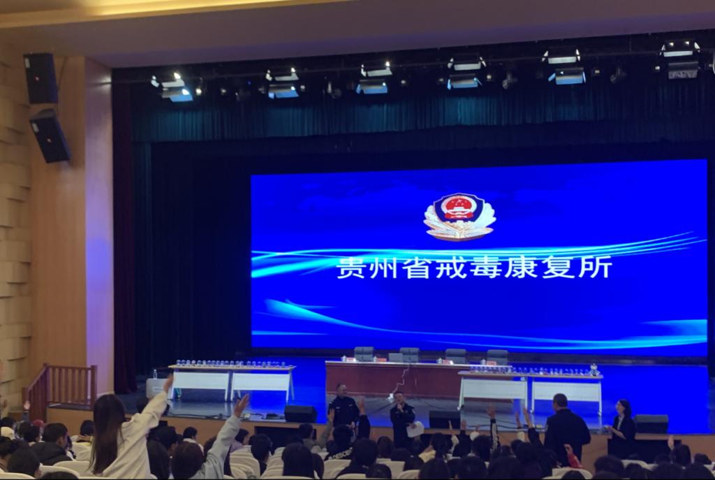 为进一步加强学生毒品预防教育,筑牢校园禁毒防线,提升学生对毒品危害的认知与自我保护意识,抓实抓牢“底线教育”,10月28日中午,“青春健康伴我行”禁毒知识专题讲座在贵州民族大学南校区学生活动中心大礼堂举行。本次活动特邀贵州省第二强制隔离戒毒所李飞华警官担任主讲,材料学院团委副书记刘嫒主持,以“以无毒之姿赴山海,携青春之志向未来”为主题,为材料科学与工程学院与传媒学院的350余名同学带来了一堂深刻而生动的禁毒教育课。