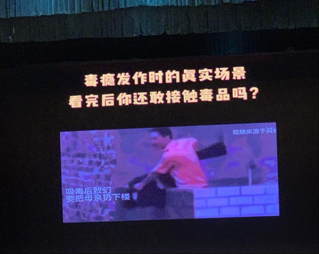 除了案例展示,李警官还重点讲解了青少年在日常生活中如何防范毒品诱惑、提升自我保护能力。他从社交场景切入,介绍各种麻醉药品与毒品,通过影片《毒版张三》系统拆解各类新型毒品的“伪装面具”——它们可能化身常见零食、饮料,潜伏于日常社交与网络空间,由此向同学们传授实用拒毒技巧,并告诫同学们:“防毒品,防损友”,倡导同学们树立积极健康的生活方式,珍惜生命,远离危害。