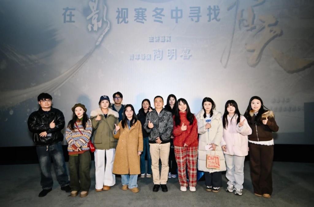 为深化产学研用协同育人,助力戏影专业研究生精准把握行业动态,2025年12月5日,贵州民族大学传媒学院教师胥宇虹带领戏剧与影视学专业研究生,赴校外活动现场参加了以“在影视寒冬中寻找春天”为主题的陶明喜导演分享会。
