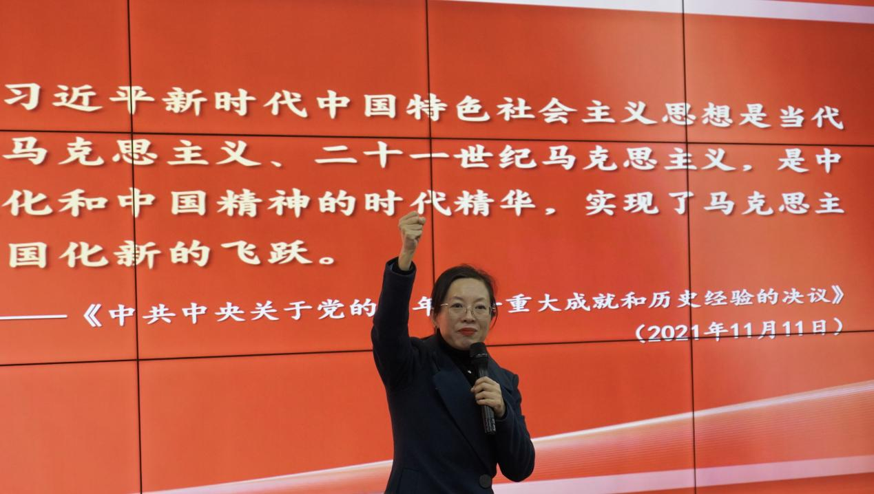 围绕“为何学、学什么、怎么用”的核心逻辑,覃元老师从三个维度展开系统阐释习近平新时代中国特色社会主义思想的相关内容。首先,她结合当前国内外形势分析,强调这一思想诞生于中华民族伟大复兴战略全局与世界百年未有之大变局交织的关键时期,以此警示全体学员道:“作为传媒骨干,唯有明晰思想诞生的时代逻辑,才能在复杂局面中保持清醒。”