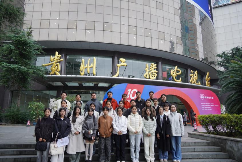 传媒学子在贵州广播电视台前合影