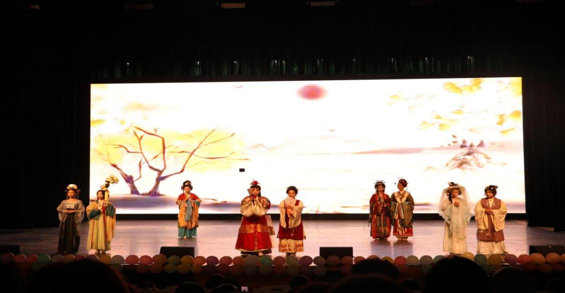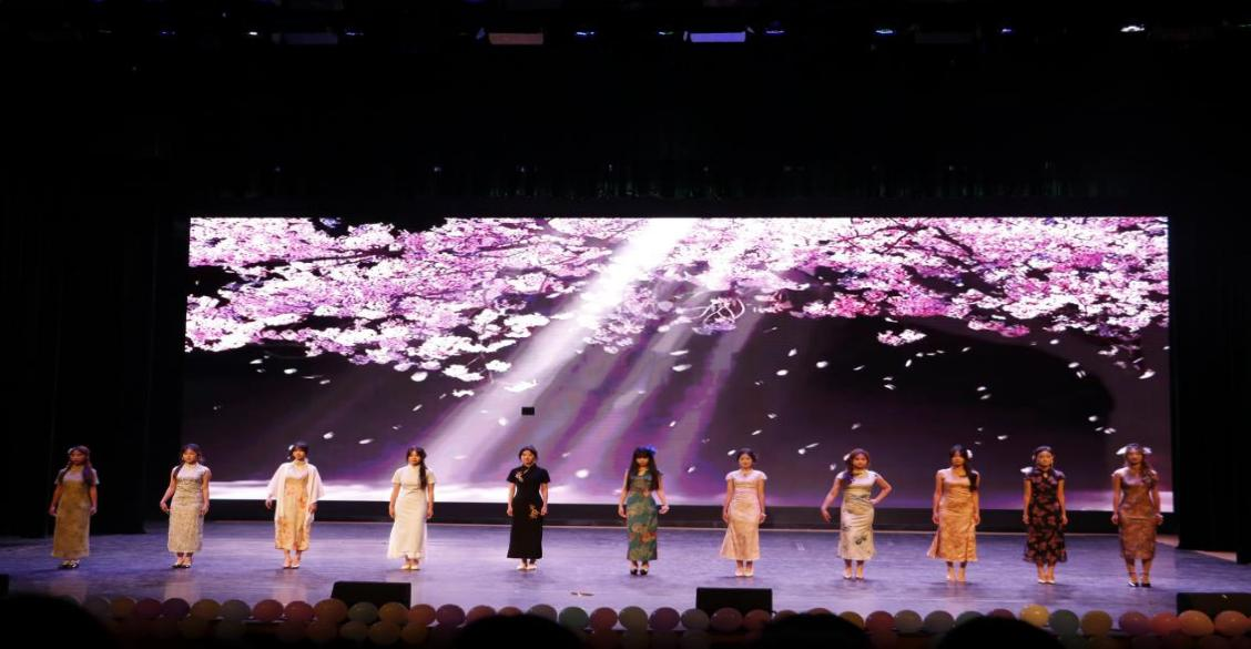 节奏渐缓,舞台转而铺展文化画卷:《旗袍秀》表演过程中,水墨、刺绣等传统元素随青春步伐轻摇,东方雅致与少年朝气碰撞出别样鲜活;《国风走秀》的衣袂翻飞间,汉服、唐装承载千年古韵,在现代校园灯光下漾开新的文化涟漪;《侗族恋歌》《生侗》的歌声则牵引出侗乡山水意境,纯净和声里,民族文化的温度漫过礼堂每一个角落。传统与青春的共振,成为此刻最动人的舞台注脚。